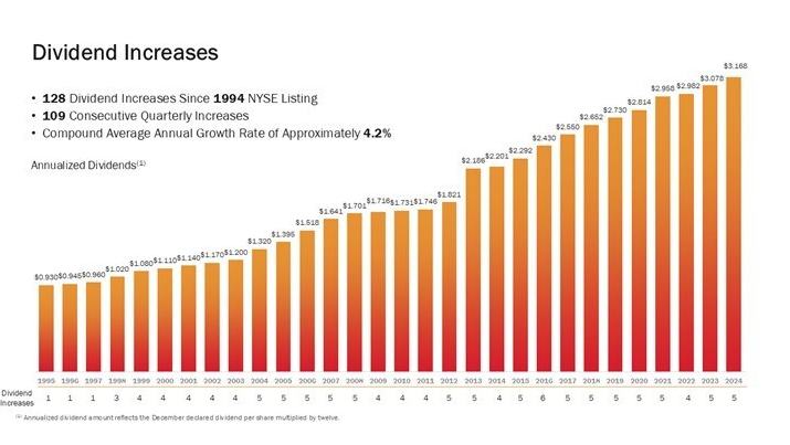 리얼티 인컴은 보수적인 재무 전략을 통해 안정적인 배당 정책을 유지하고 있으며, 지속적인 성장 기회를 모색하고 있습니다.
