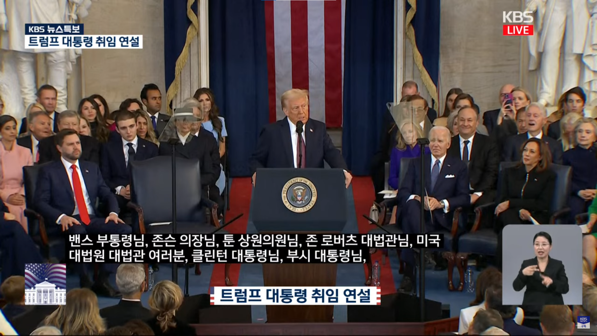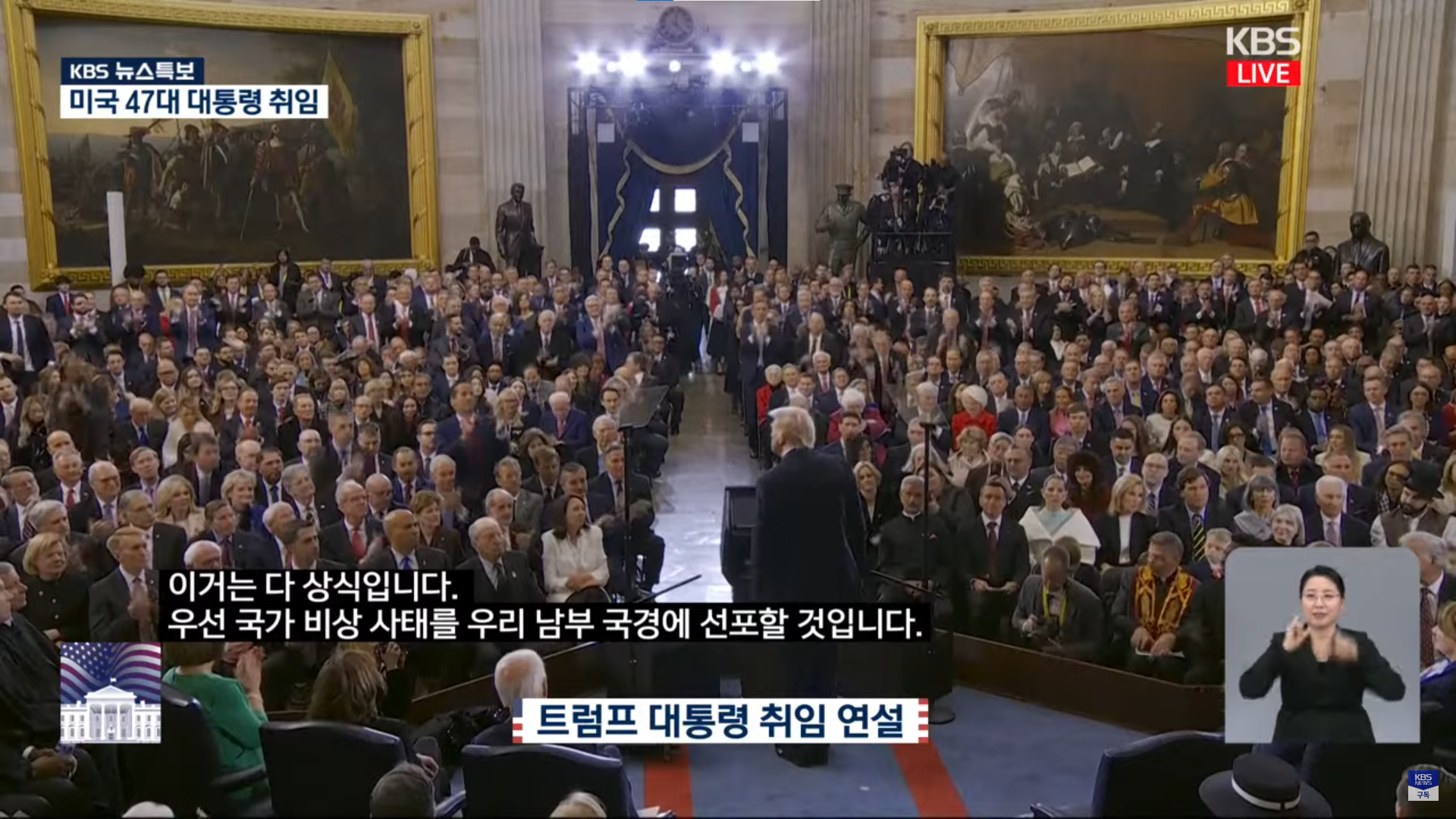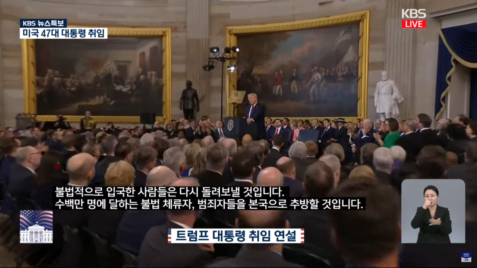 트럼프 대통령은 취임 연설에서 미국의 남부 국경에 대한 국가비상사태를 선포하며 불법 이민자 유입을 차단하겠다고 발표했습니다. 그는 미국의 안전을 위협하는 요소들을 근절하겠다는 강한 의지를 드러냈습니다.
